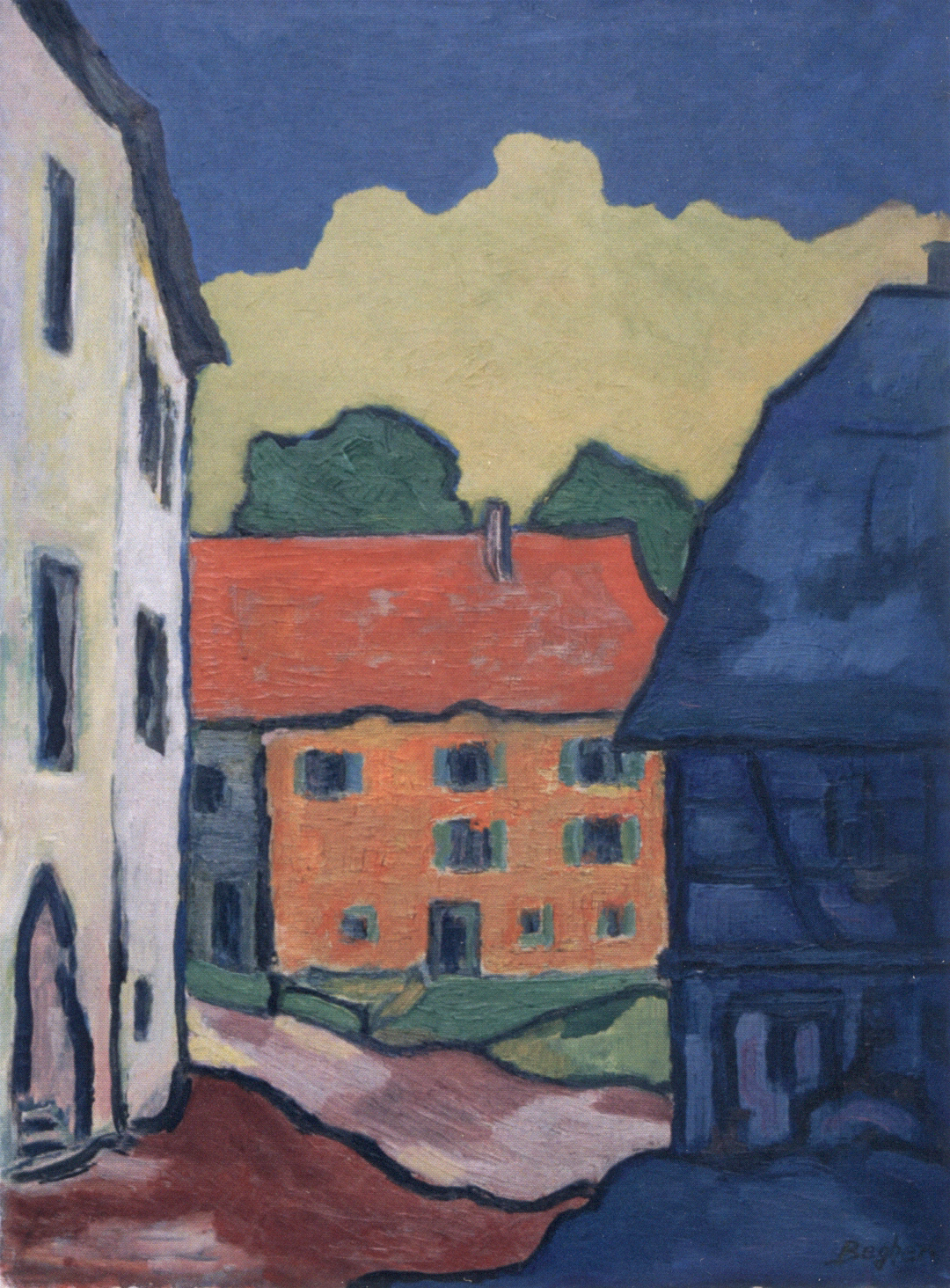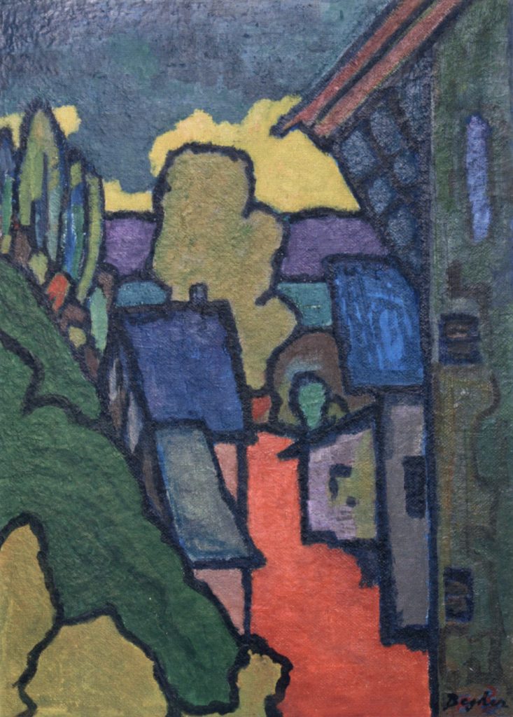 Im Unterschied dazu wandte sich Begher, der vor 1950 noch gegenständlich nach der Natur malte und zeichnete, in späteren Jahren immer mehr der abstrakten Malerei zu, bei der die Motive auf ihre geometrischen Grundformen reduziert werden, die Objekte ihre perspektifische Tiefe verlieren und flächig werden. Dabei war es aber auch Begher immer wichtig, dass die Inhalte und Motive seiner Bilder erhalten und erkennbar blieben.