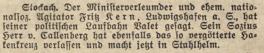 Aufgrund seines „undurchsichtigen Firmengeflechts“ untersagte die Handelskammer Konstanz in späteren Jahren Callenberg die Gründung neuer Unternehmen. 1936 wurde ein Handelsregister-Eintrag den Callenberg-Concern betreffend gelöscht.